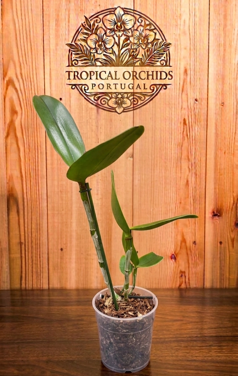 Rega: 🚿 Regue abundantemente, mas permita que o substrato seque quase completamente antes da próxima rega. Como possui pseudobulbos grandes para armazenar água, a planta é sensível ao excesso de humidade nas raízes (encharcamento).