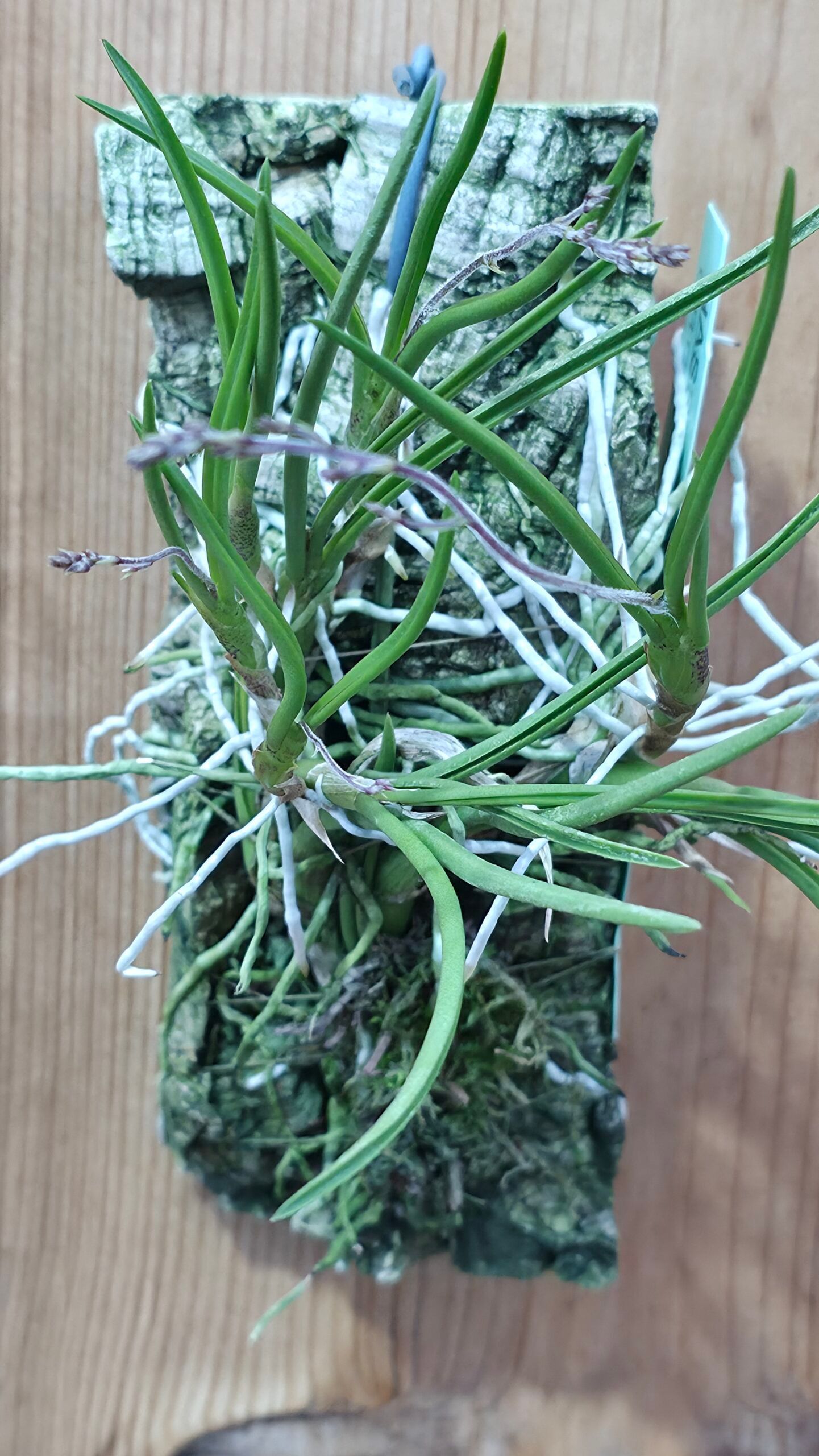 Substrato: Utilize uma mistura para orquídeas epífitas com excelente drenagem, como casca de pinheiro média, carvão vegetal e um pouco de musgo sphagnum para reter alguma humidade. Também se desenvolve muito bem montada em cortiça ou madeira rugosa.