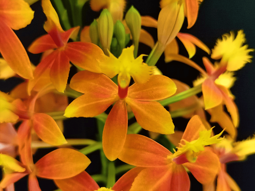Um caule floral emerge do topo de cada pseudobulbo, eles geralmente duram muito mais tempo do que as flores. As flores caem à medida em que as novas vão se abrindo. As cores mais comuns para as flores dessas orquídeas são, vermelhas, amarelas, roxas e brancas.
