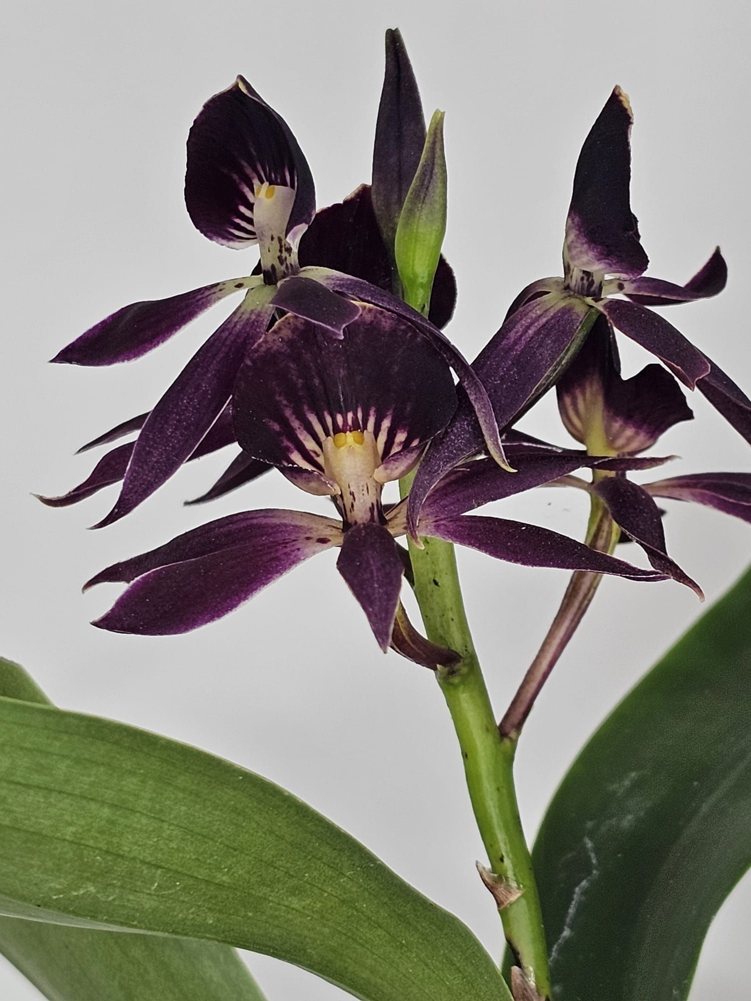 A Epicattleya Black Comet ostenta flores opulentas que evocam a magia da noite. Suas pétalas aveludadas, em tons de preto profundo e roxo enigmático, se entrelaçam em uma dança hipnotizante, adornadas com veios sutis que revelam a complexa beleza da natureza. Cada flor, com seus 10 cm de diâmetro, emana uma fragrância rica e sedutora, capaz de despertar os sentidos e transportar você para um reino de pura magia.