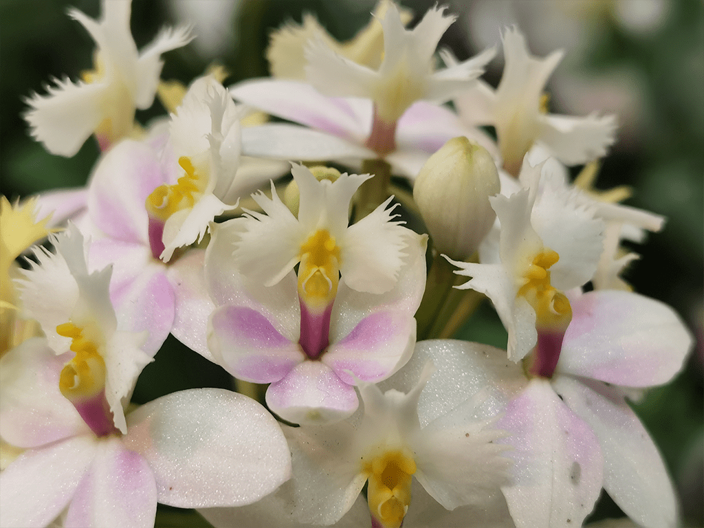 Um caule floral emerge do topo de cada pseudobulbo, eles geralmente duram muito mais tempo do que as flores. As flores caem à medida em que as novas vão se abrindo. As cores mais comuns para as flores dessas orquídeas são, vermelhas, amarelas, roxas e brancas.