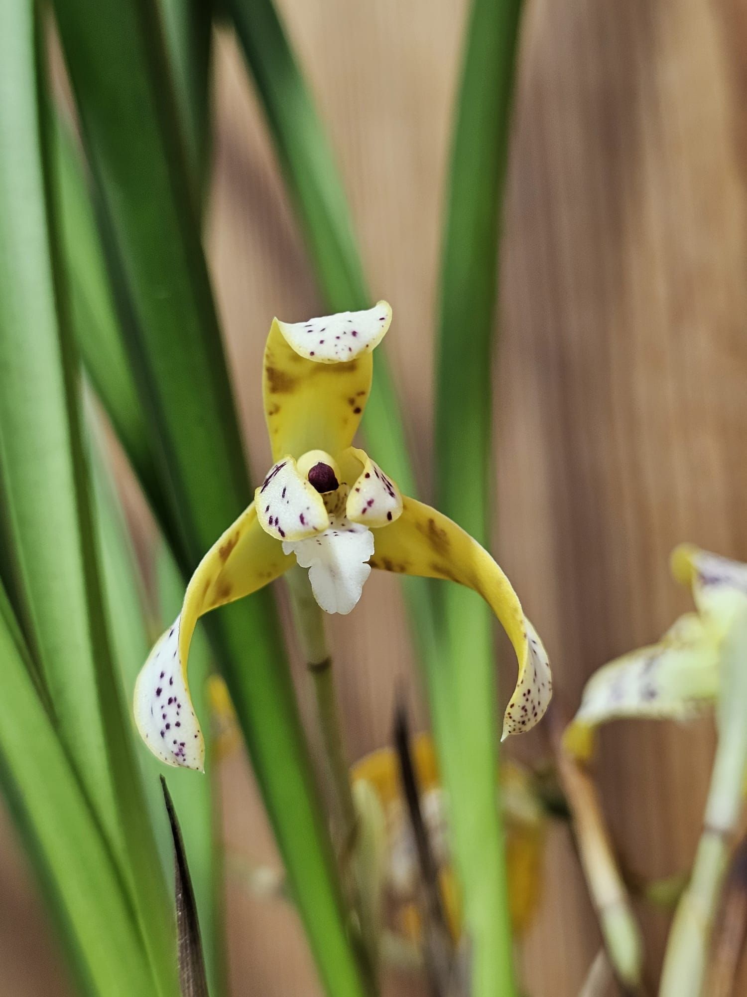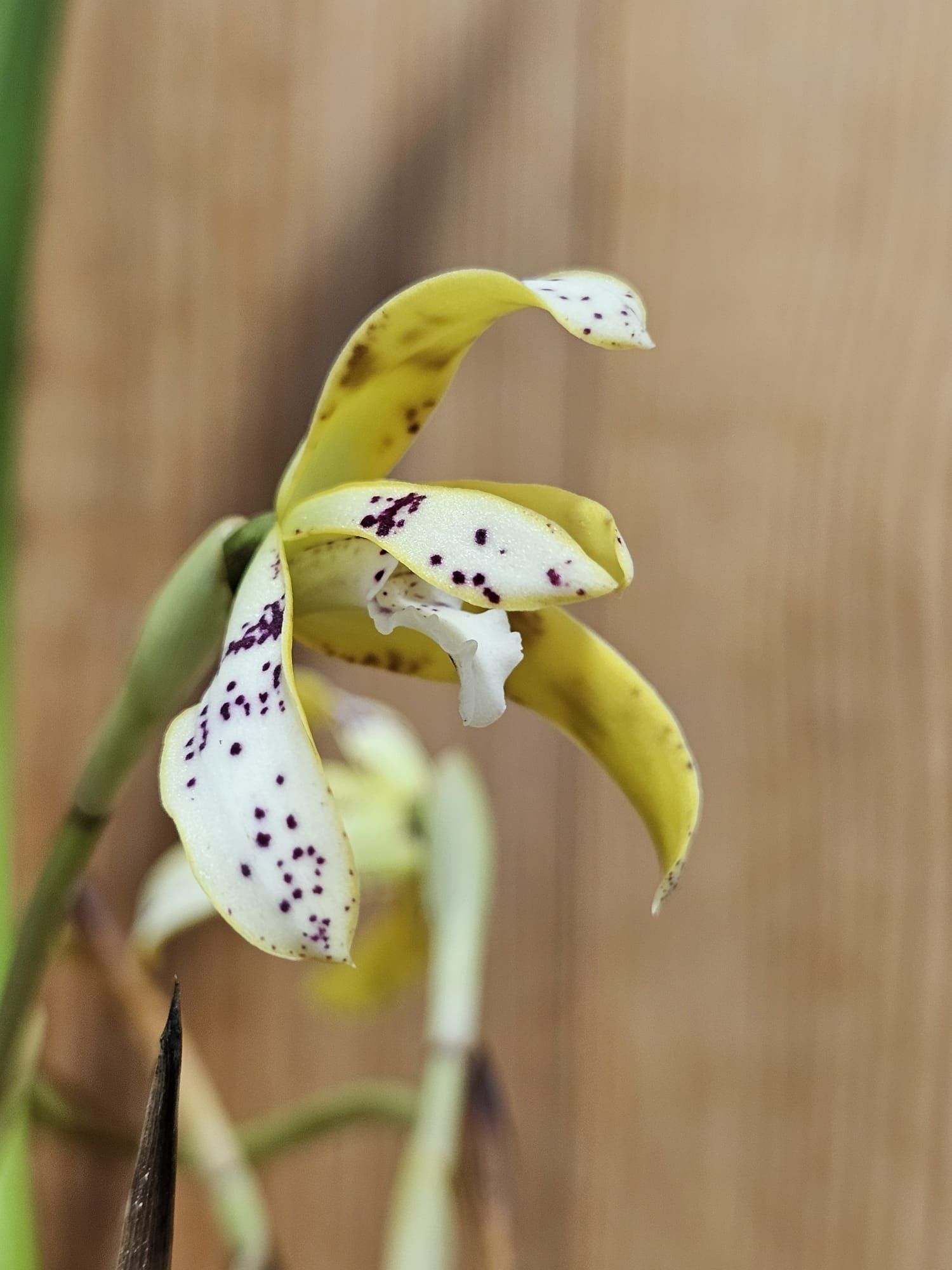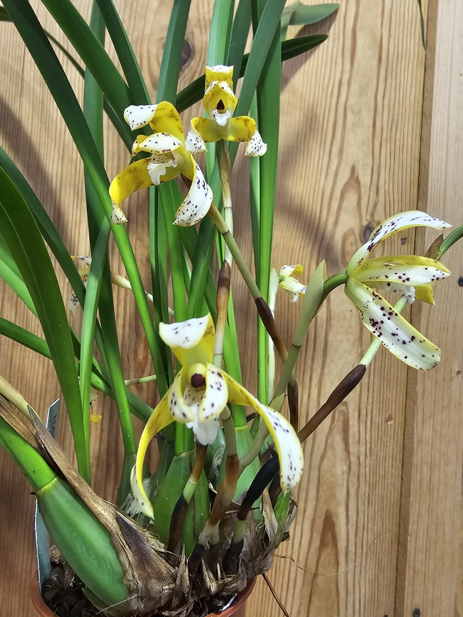 Flores «Pintadas» e Aromáticas: 🌺 Produz flores de tamanho médio com uma cor base que varia de creme, branco ou amarelo-esverdeado, frequentemente com marcas ou pintas escuras (castanhas ou roxas) no interior das sépalas e pétalas, dando o aspeto de «pintura». Muitas plantas exalam um aroma doce e condimentado.
