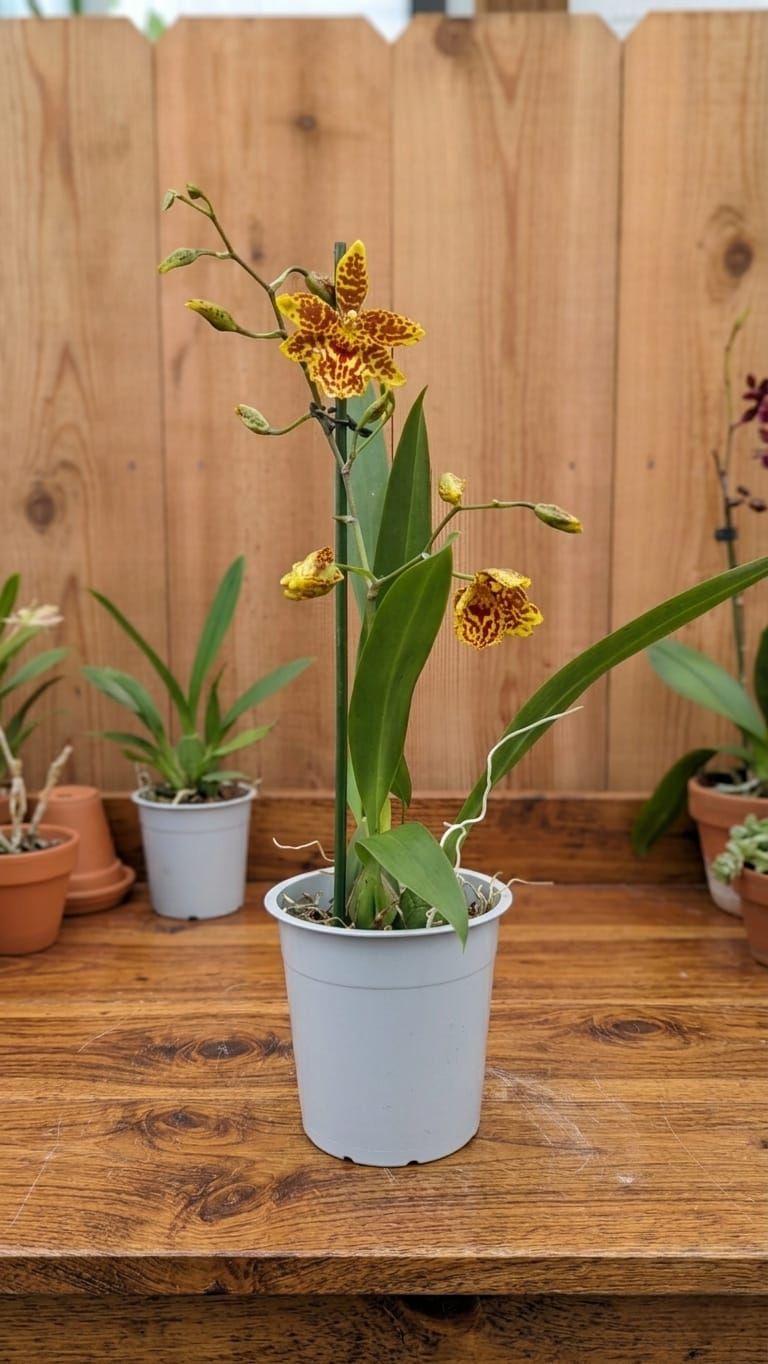 Rega: 🚿 Regue sempre que o substrato estiver quase seco. Observe os pseudobulbos: se eles começarem a enrugar excessivamente, a planta está a pedir mais água. No entanto, evite manter as raízes constantemente encharcadas.