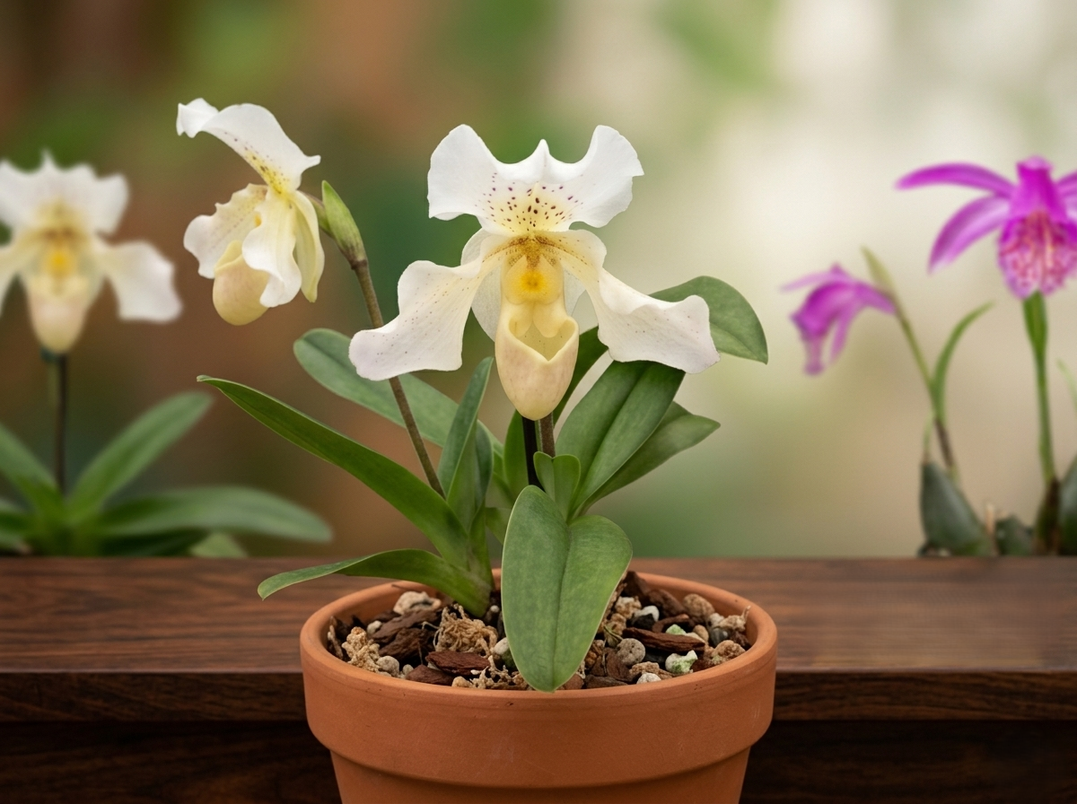 Substrato: 🪴 Utilize uma mistura específica para orquídeas terrestres. Uma combinação de casca de pinus fina, carvão vegetal, perlita e um pouco de musgo sphagnum garante a drenagem e a humidade necessárias.