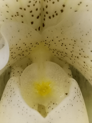 - Labelo Distintivo: O labelo, em formato de sapatinho, é a parte mais chamativa da flor e geralmente apresenta um contraste sutil com o restante da flor.