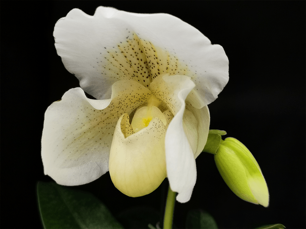 Paphiopedilum White Lady é um híbrido de orquídea que encanta com sua beleza clássica e atemporal. Suas flores brancas e puras trazem uma sensação de paz e serenidade a qualquer ambiente.