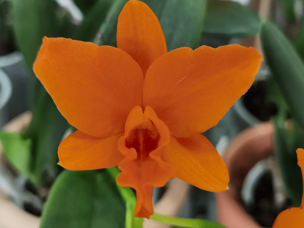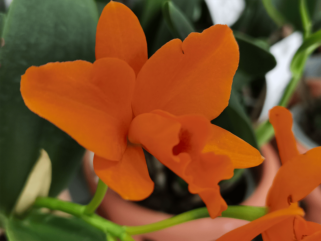 Flores de Cor “Laranja Vivo”: 🍊 Como o nome ‘Orange Boy’ sugere, as flores apresentam um tom de laranja saturado e uniforme, quase neon. Além disso, a textura das pétalas é ligeiramente cerosa, o que confere um brilho natural sob a luz do sol.
