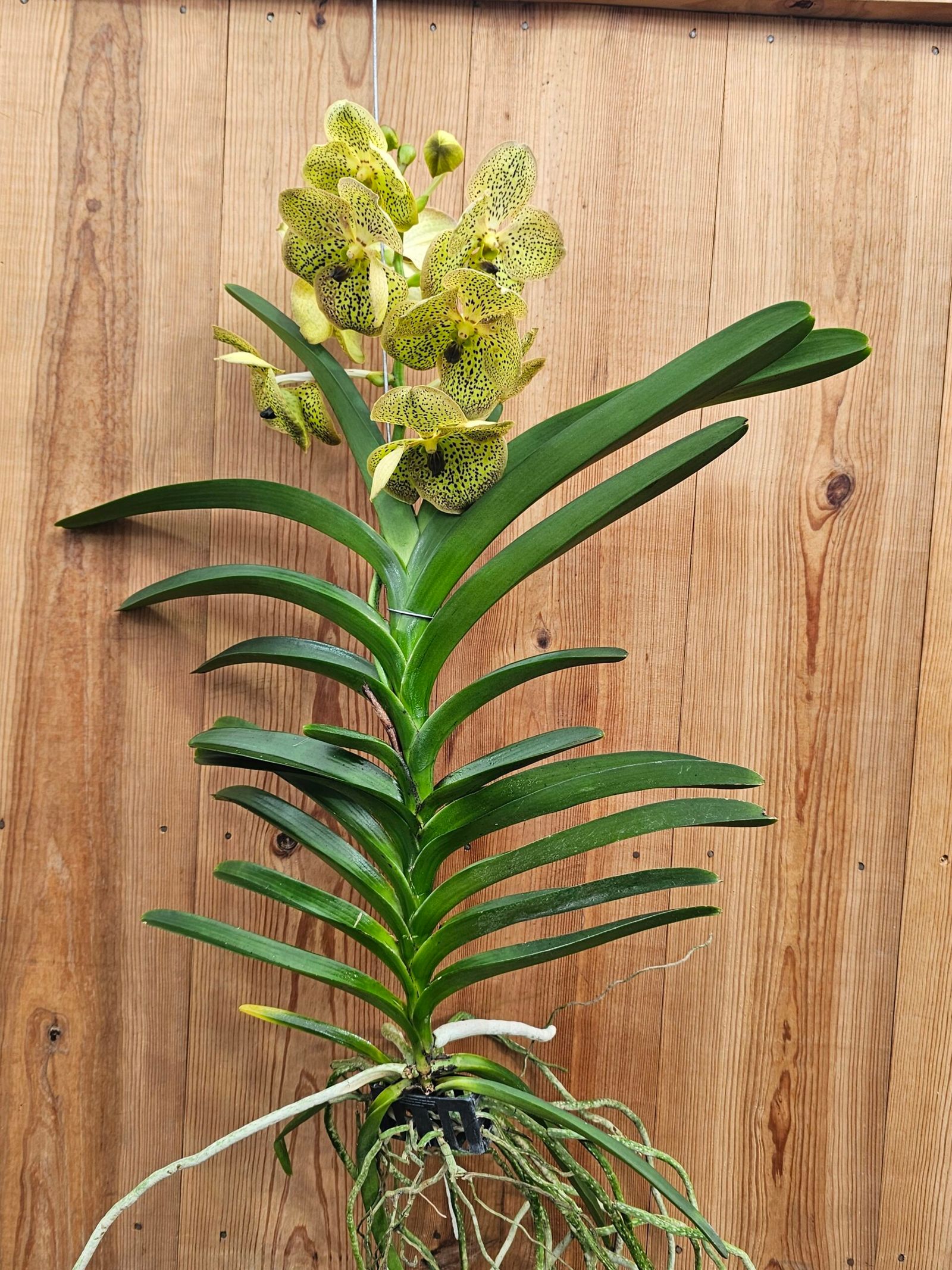 • Hábito de Crescimento Monopodial: ⬆️ Esta orquídea cresce verticalmente, desenvolvendo um caule forte com folhas dispostas em forma de leque. Adicionalmente, ela produz raízes aéreas longas e prateadas que captam a humidade diretamente da atmosfera.