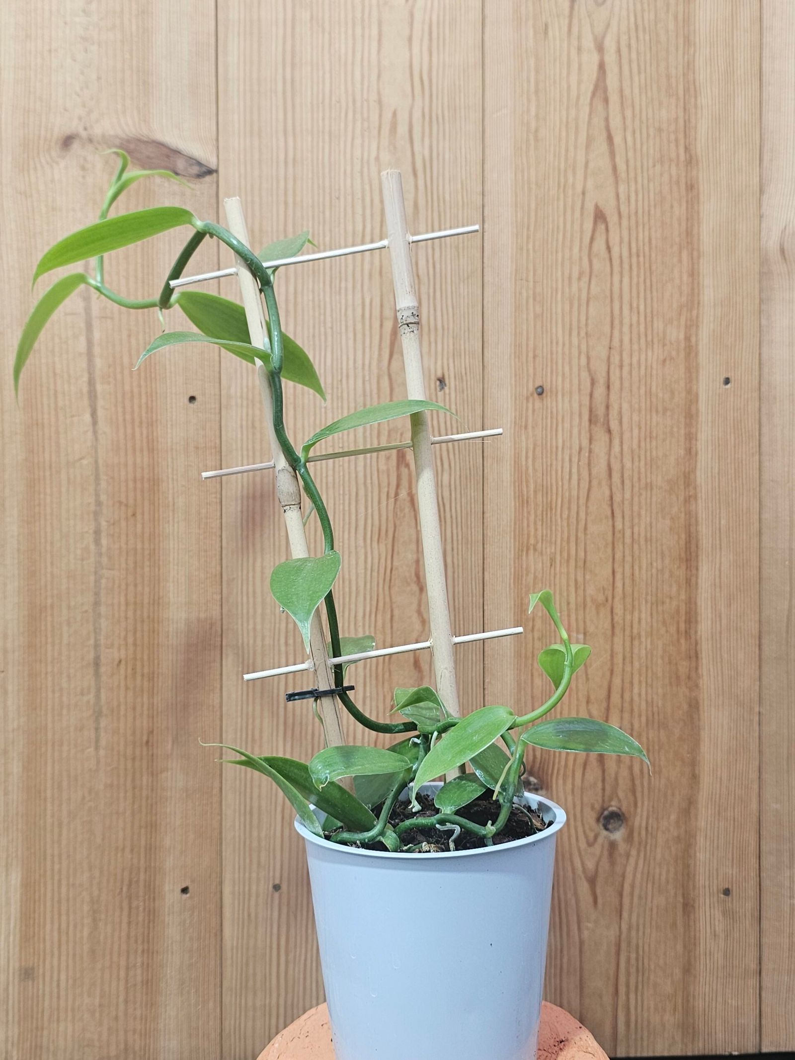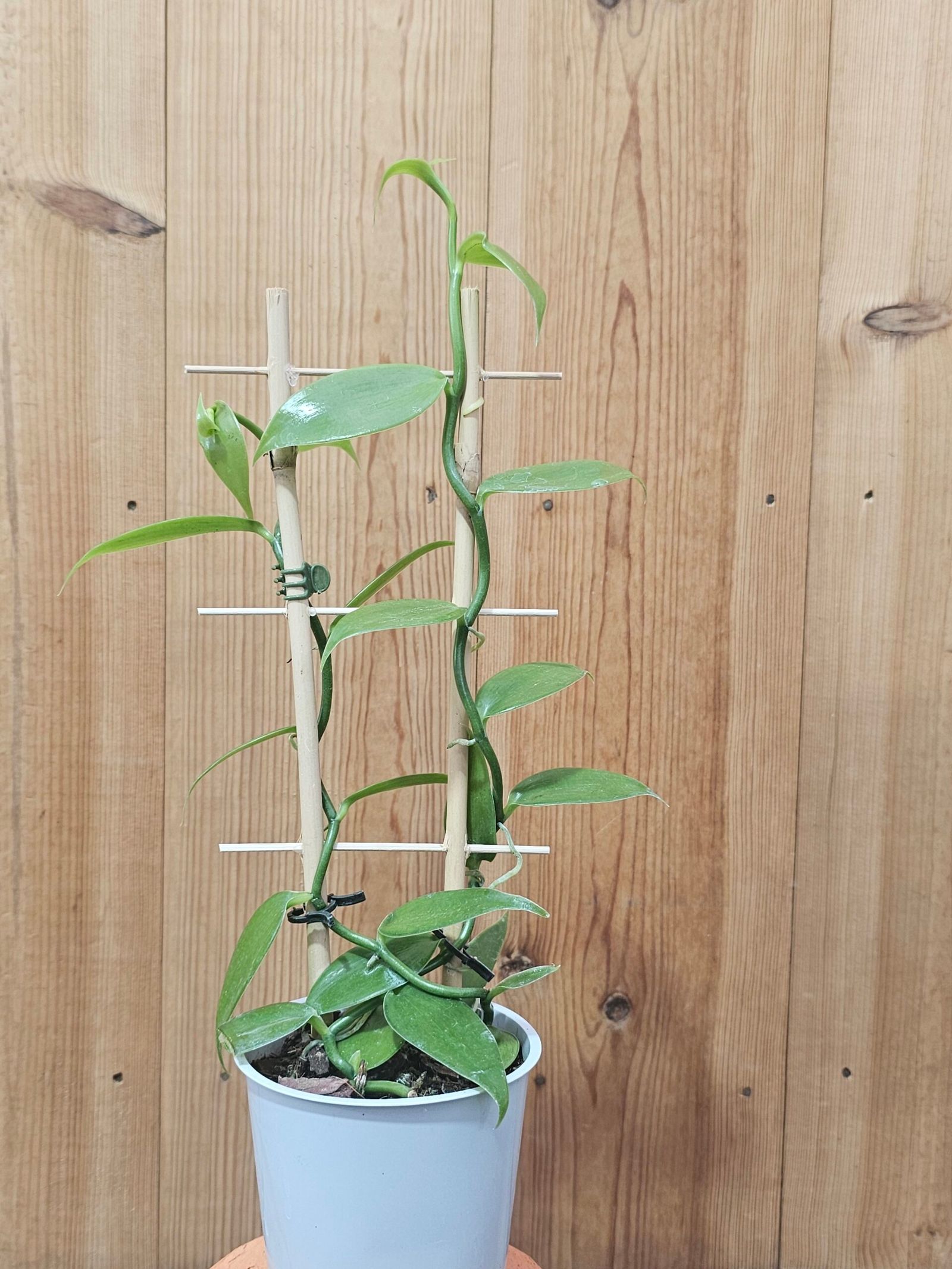Crescimento em Trepadeira: 🪜 Diferente da maioria das orquídeas, a Vanilla é uma liana (trepadeira) que pode atingir muitos metros de comprimento. Portanto, ela utiliza as suas raízes aéreas para se agarrar a suportes ou troncos de árvores, criando um efeito visual de selva tropical.